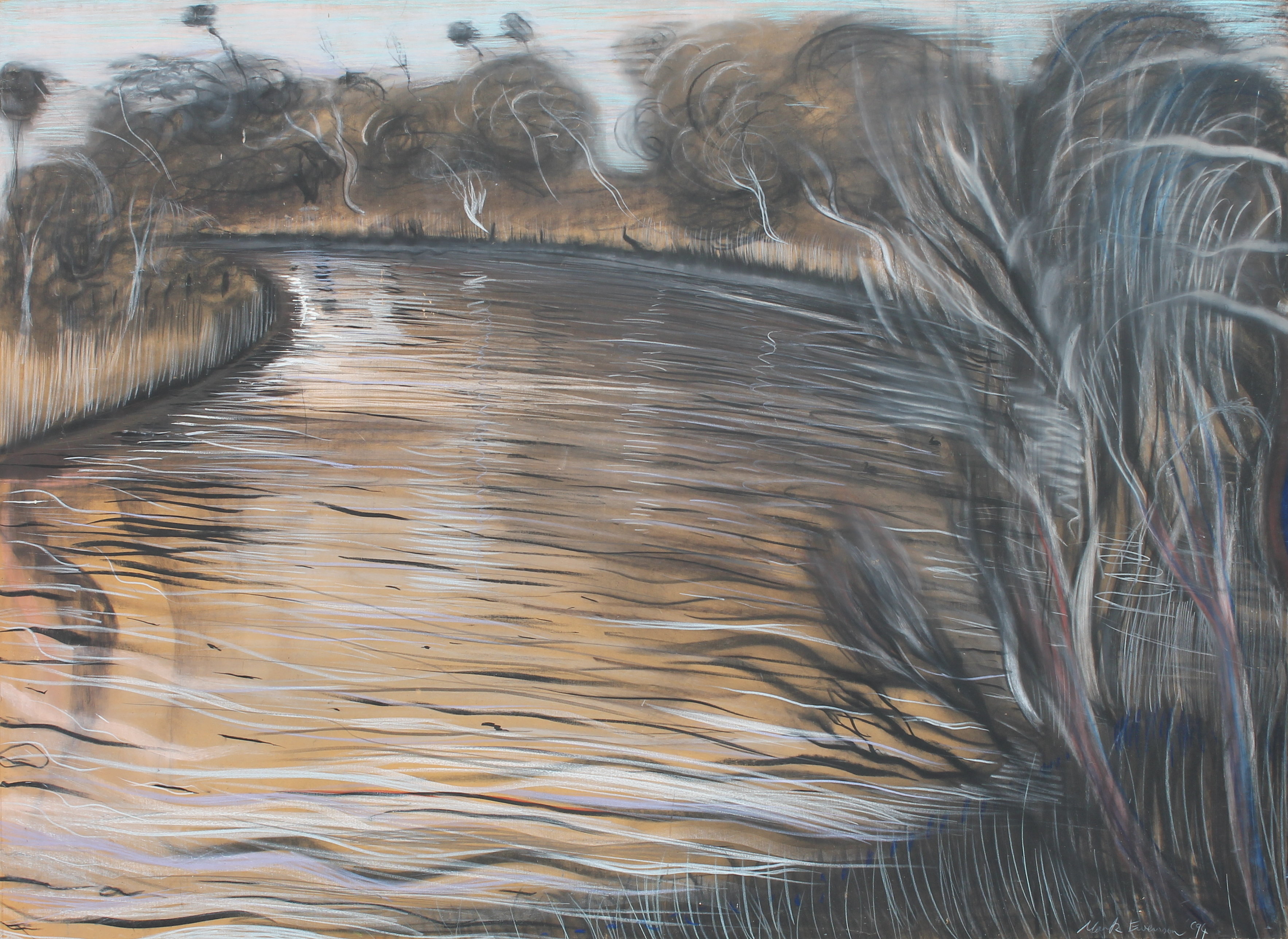 ‘Tarwin river bend’ 1994,charcoal-pastel-oil,1.2 mtrs / SOLD