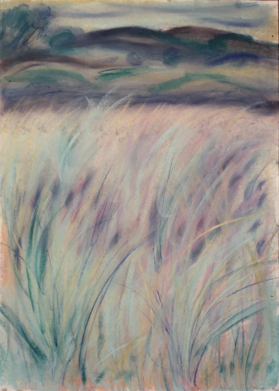 ‘Tussocks in the rain’,0.5 mtrs pastel,1996,SOLD