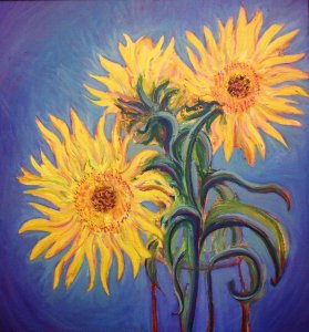 ‘Sunflowers in violet’,oil,1996,1 metre,SOLD