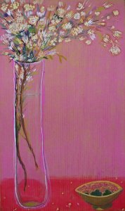 ‘Pink still life’,pastel-enamel-collage-oil,1996,0.5 mtrs,SOLD
