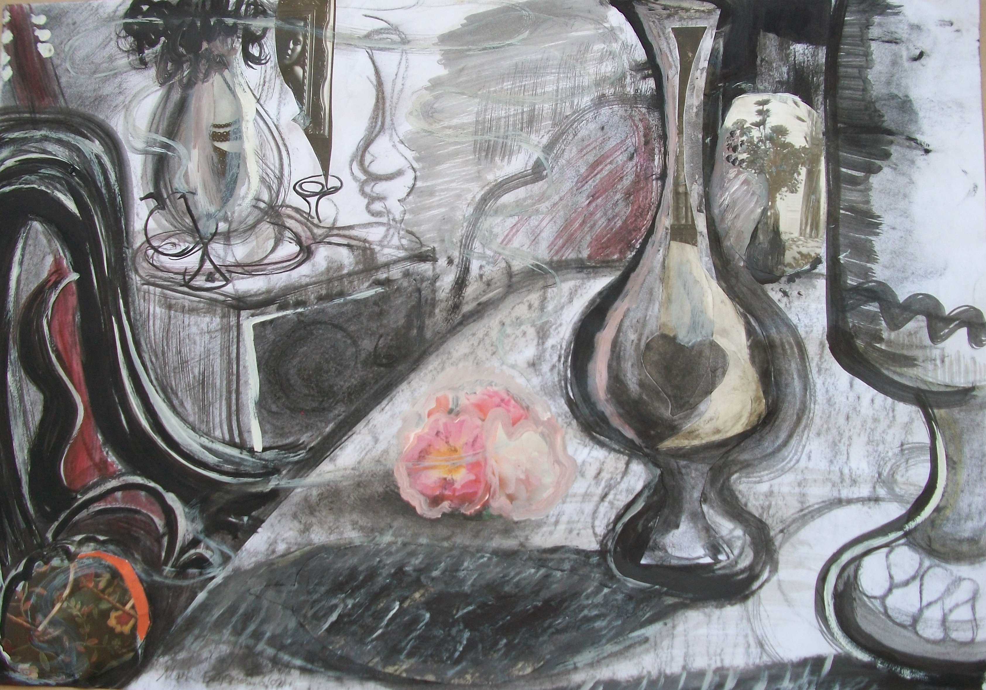 ‘Inverloch interior 2’,2002,charcoal-oil-collage,0.5 mtrs