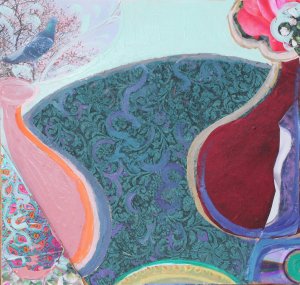 ‘Still life with pidgeon’,2011,acrylic-collage,0.35 mtrs