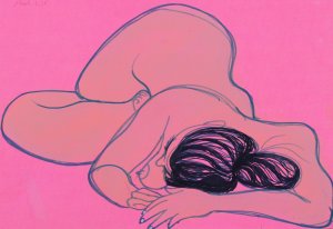 ‘figure in pink’ / 2018 / 0.6 metres / pastel, felt pens on pink card