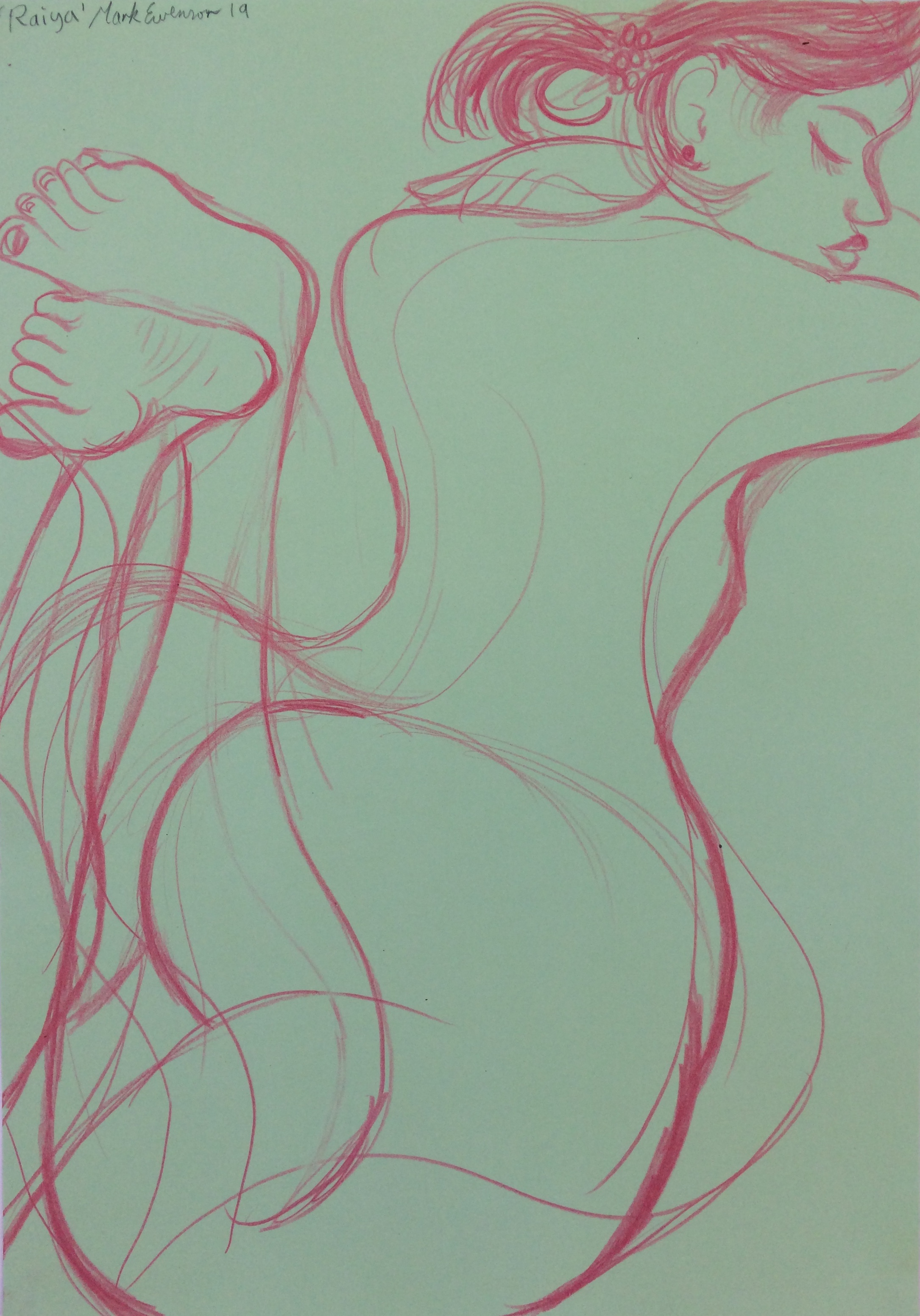 ‘Raiya @ Thrift life drawing, Stkilda’ / red pencil on green card / 0.3 metres