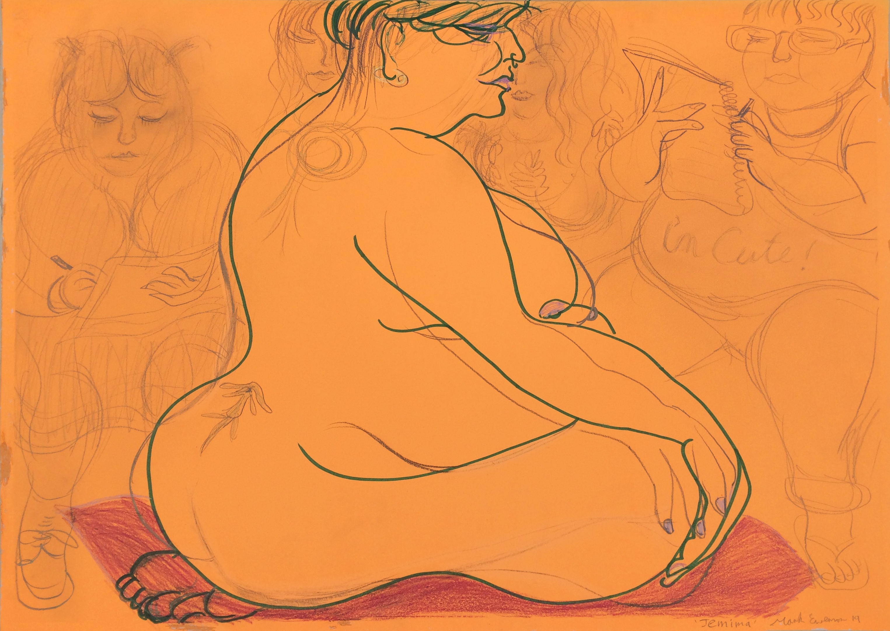 Body positive life drawing session, Melbourne, 2019 / felt pen, pencil on orange card / 57x40cm /$240