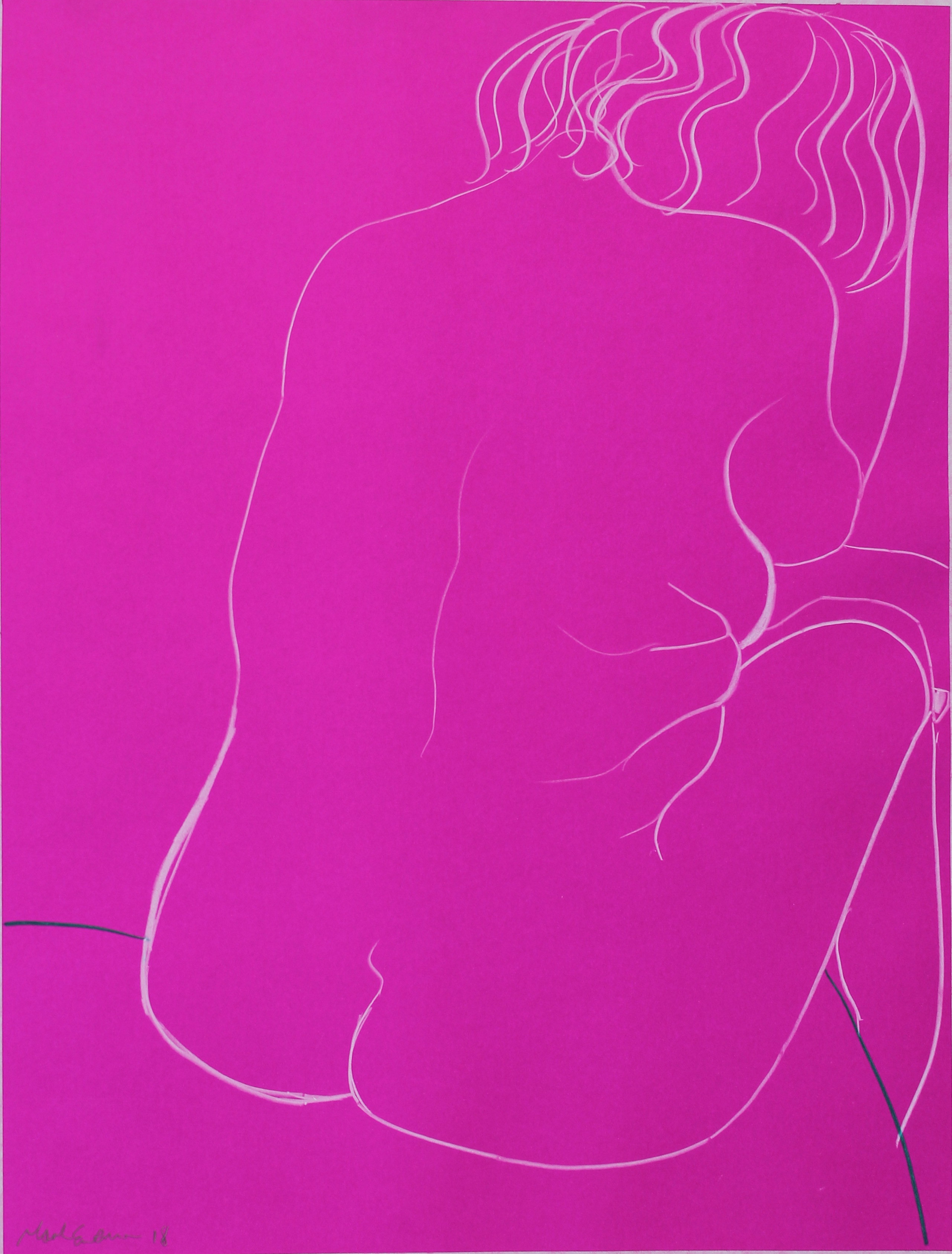 ‘White contour figure drawing 2018’ / white pencil, felt pen on purple paper / 0.5 metres