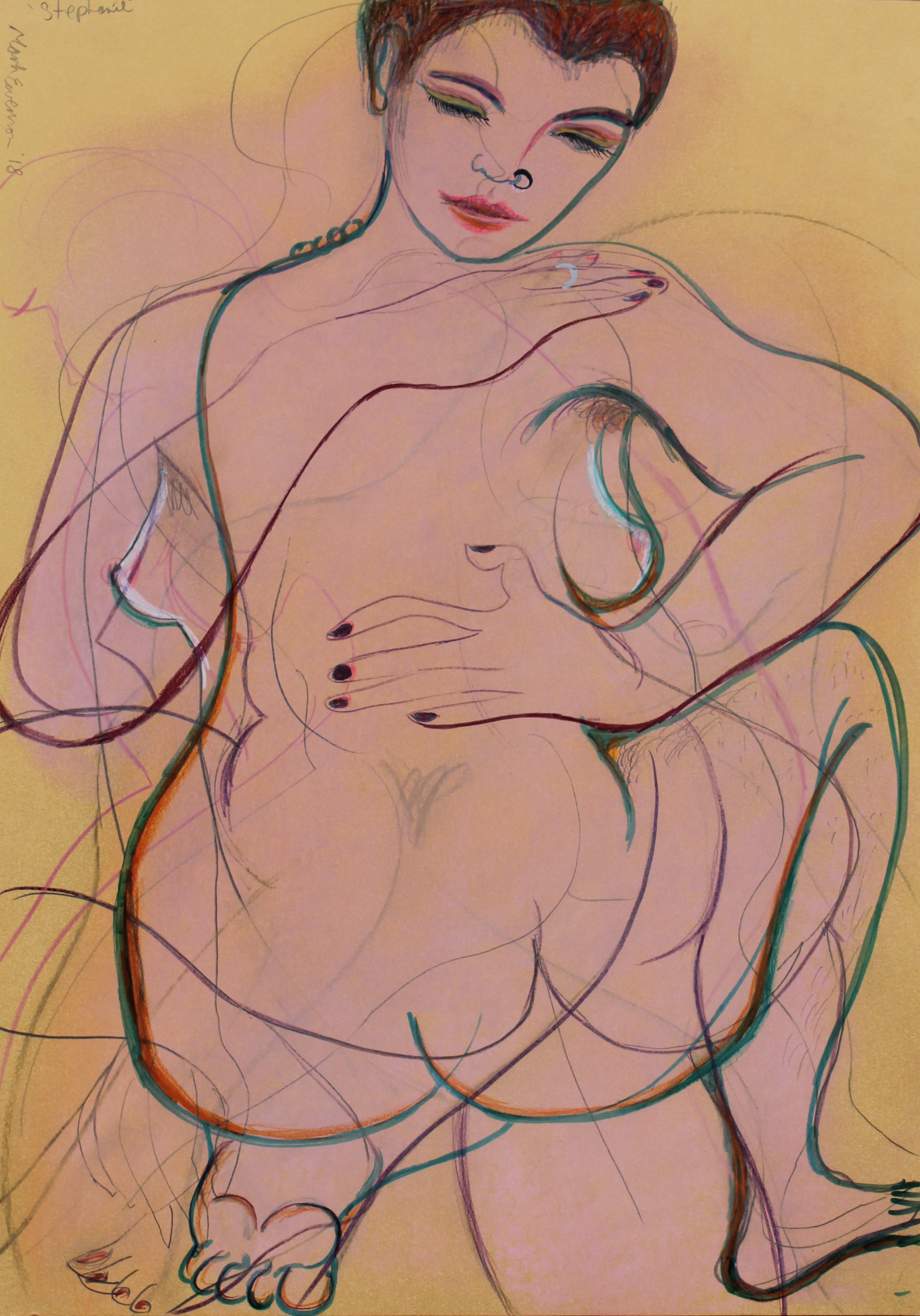 ‘Stephanie’ / pastel, felt pen, pencil on gold card / 0.5 metres