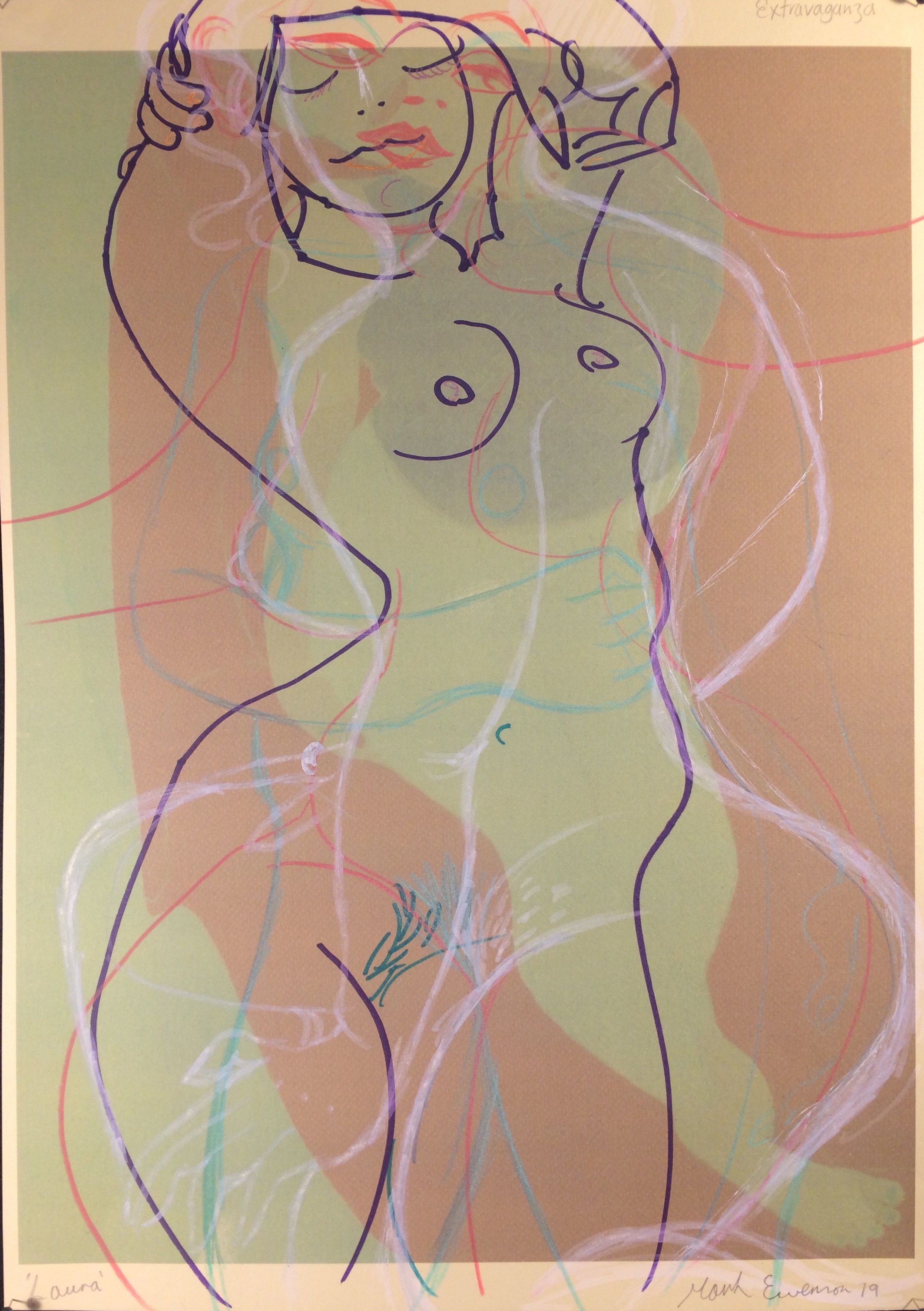 ‘Laura V’ /2019 /felt pen, pencil, on photo print out of FL work ‘Anita Beach’ on cream card / 40x30cm