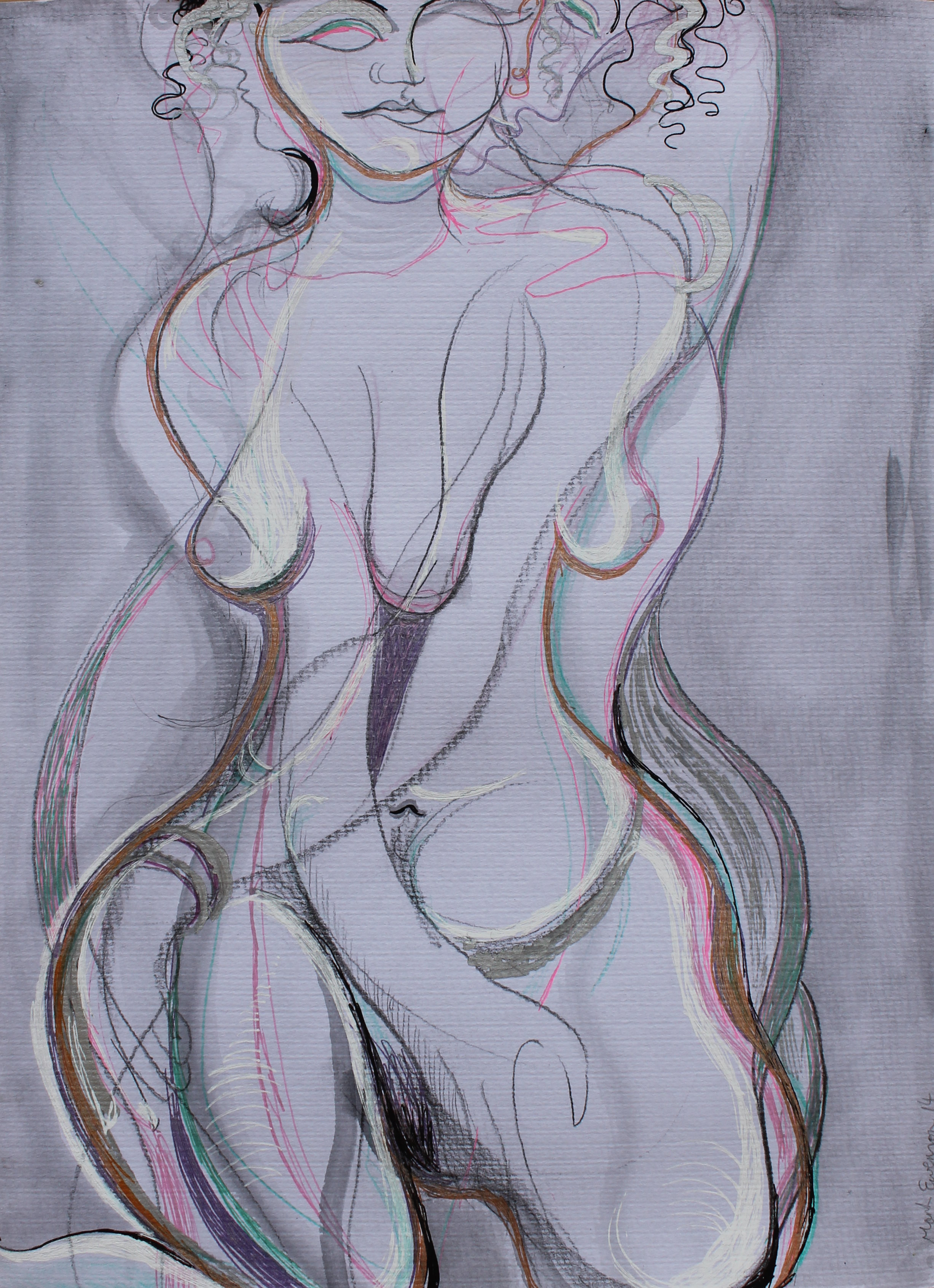 ‘Rachel at Brisbane drawing’ , 2014,pencil-graphite-metallic and felt tip pen,0.4 mtrs