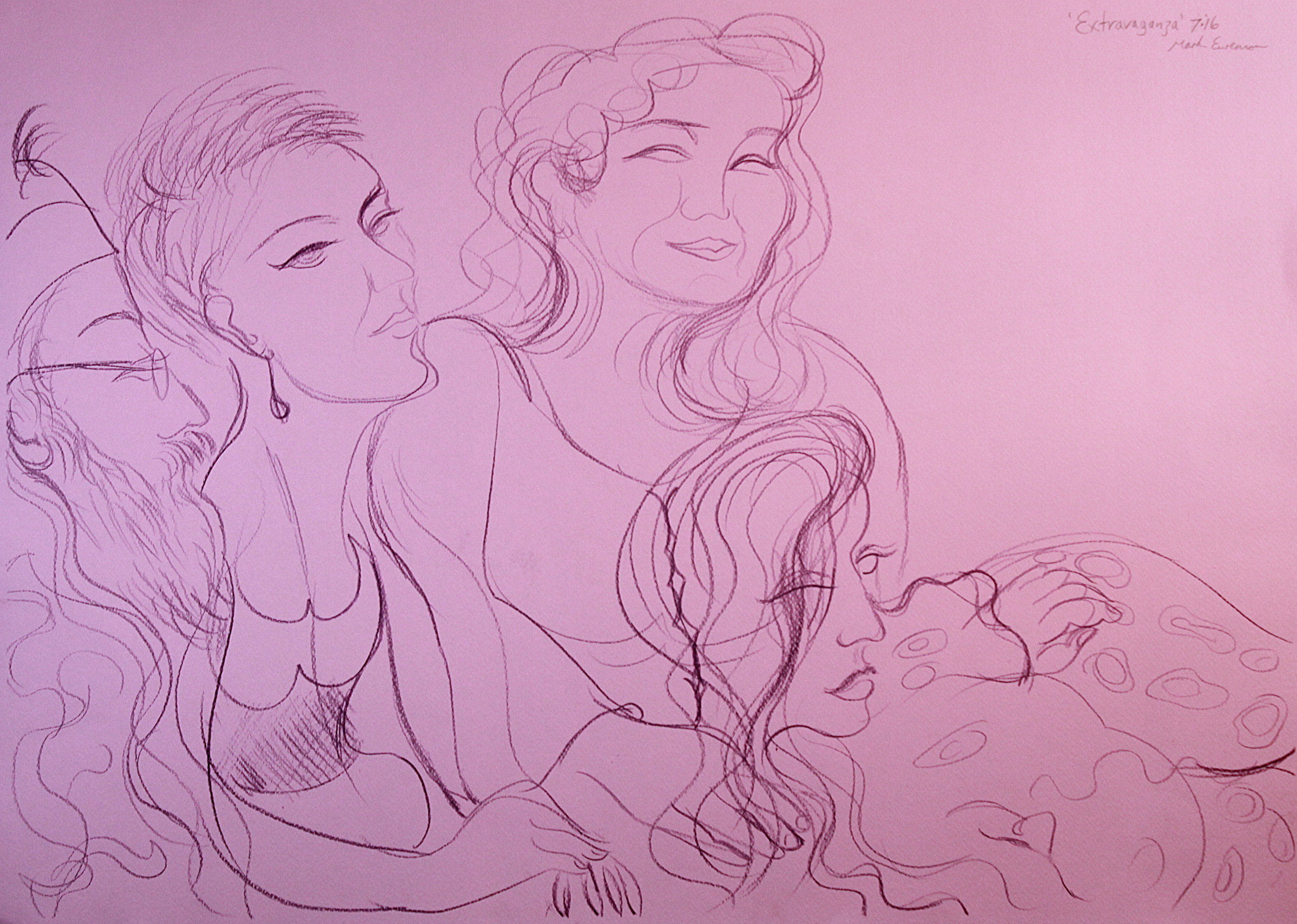 ‘Extravaganza 7-’16’ / pencil on pink paper / 0.7 metres