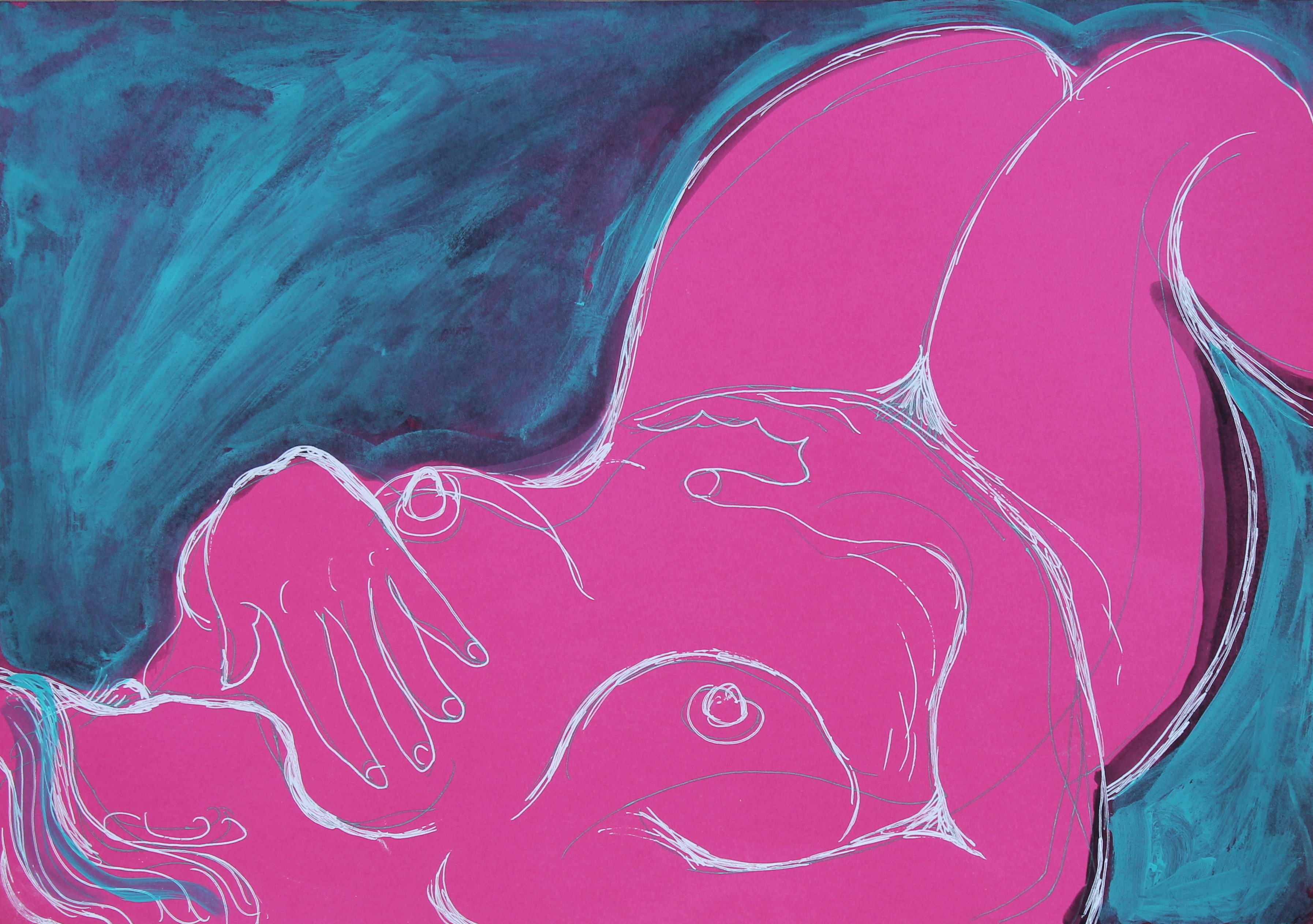 ‘Woman in mourning’ 2014 / ink pen, acrylic on pink paper / 0.4 metres