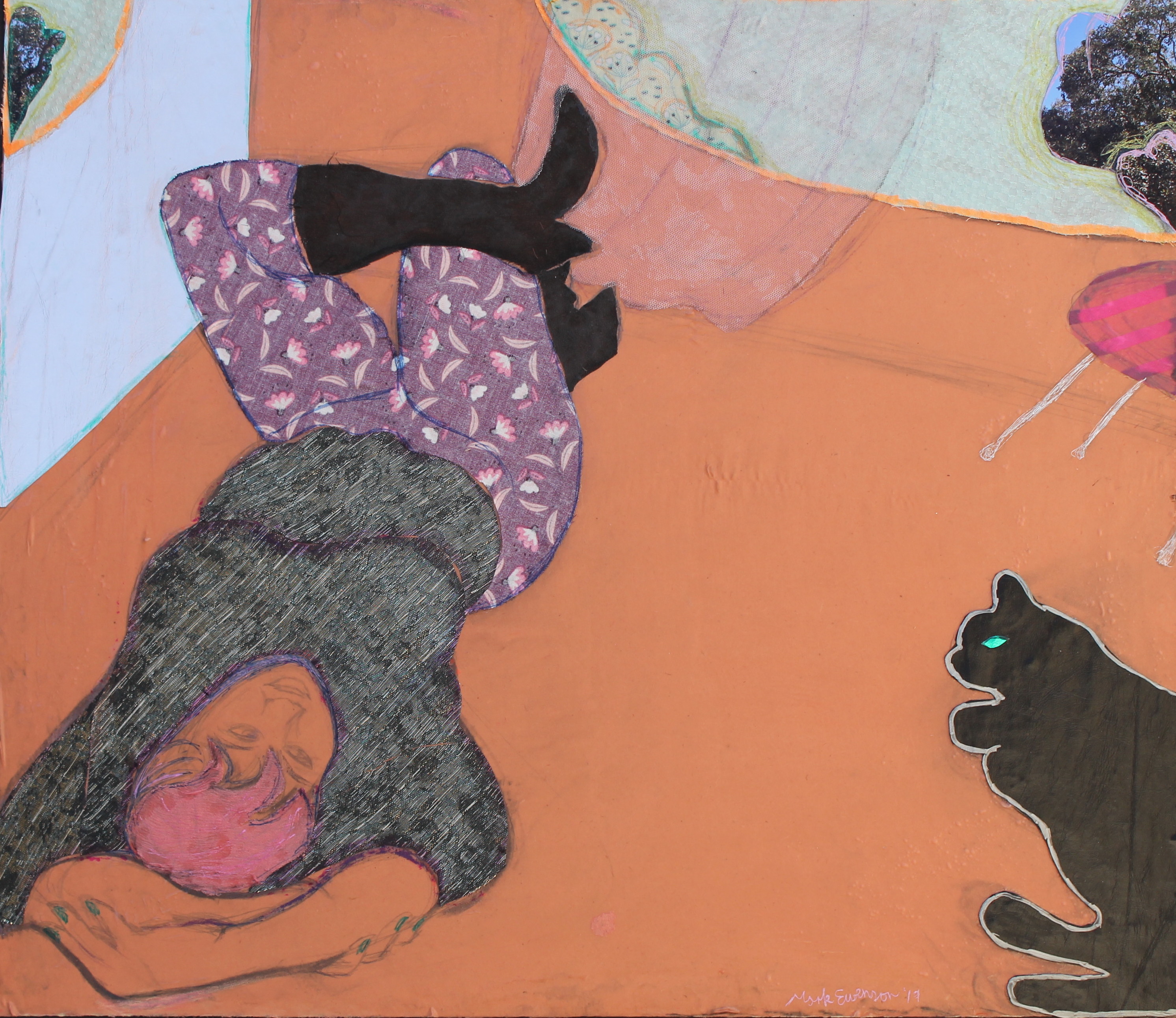 ‘Coco Interior’ 2019-20 / layered fabrics, pva glue, photography, gel ink pen, felt pen, pencil on mdf / 58x50cm / $700 $750 BUY NOW ONLINE!…CLICK LINK BELOW ARTWORK