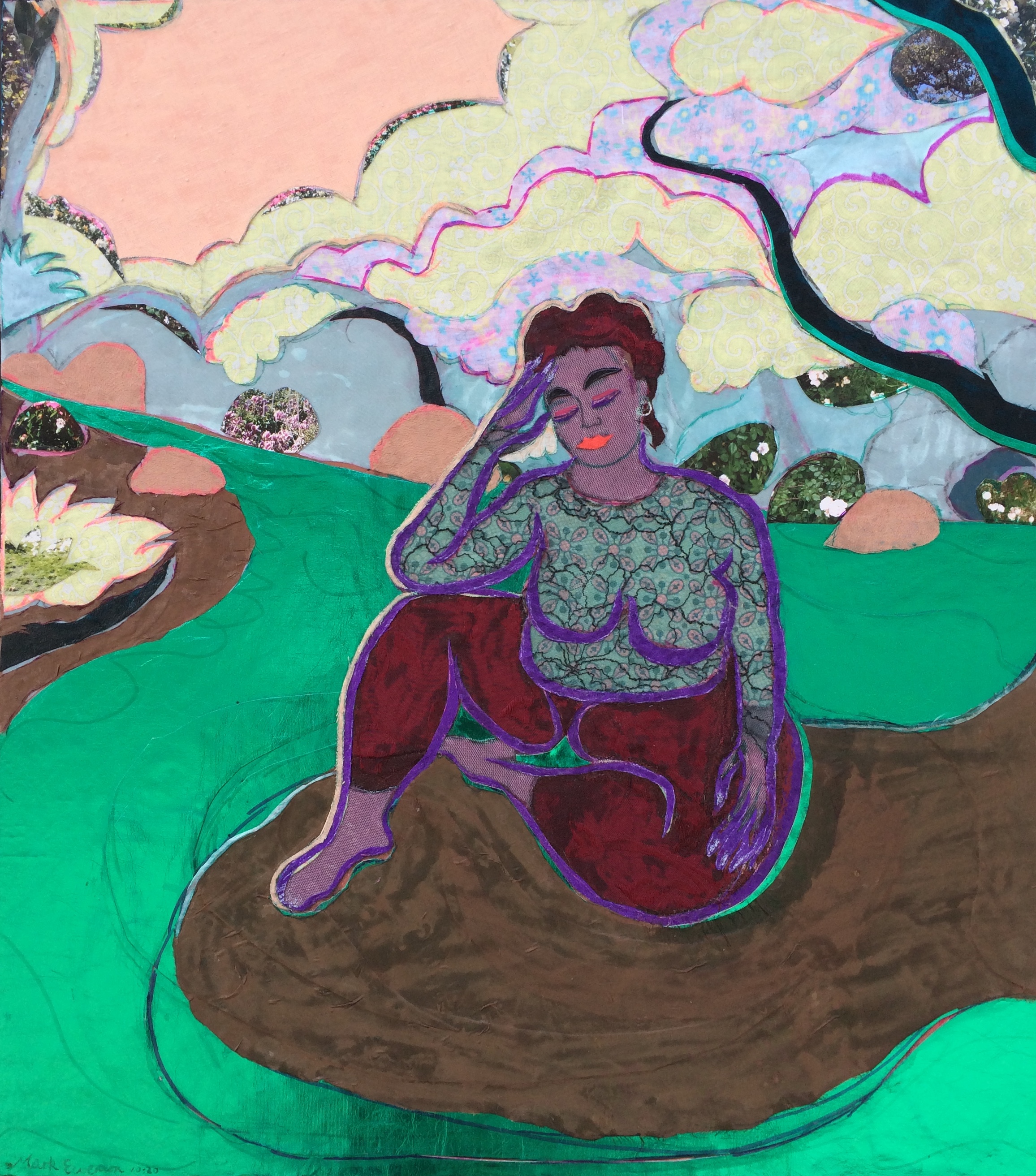 ‘With her River’ .2020 : fabrics, pva, photography, drawing on panel : 60x53cm ‘With Her river’, 2020 / fabrics, pva glue, photography, drawing on panel / 60x53cm
