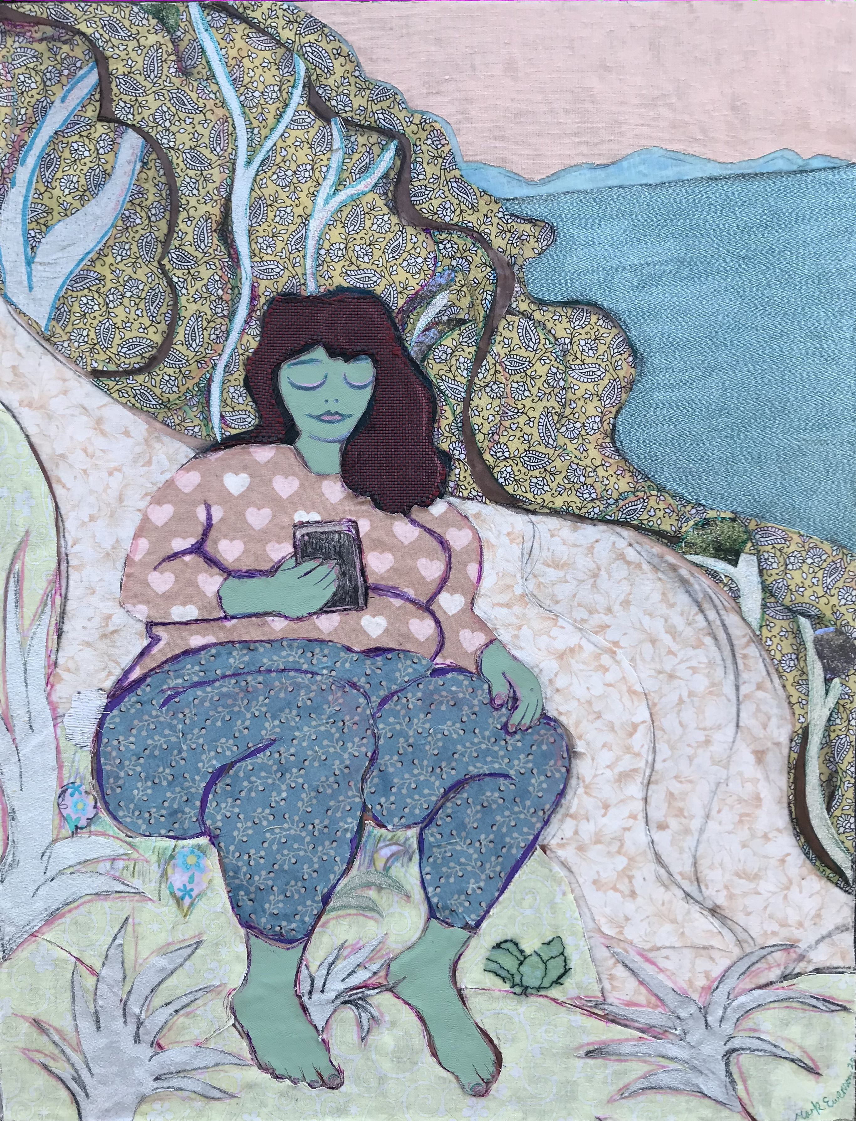 ‘With Their Phone’ 2020, fabircs, pva, photography, mixed media drawing, on panel, 41x53cm ‘With Their Phone’ 2020, fabircs, pva, photography, mixed media drawing, on panel, 41x53cm