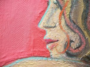 detail of ‘Woman with cane chair’ / fabrics,acrylic on board / 2009-10