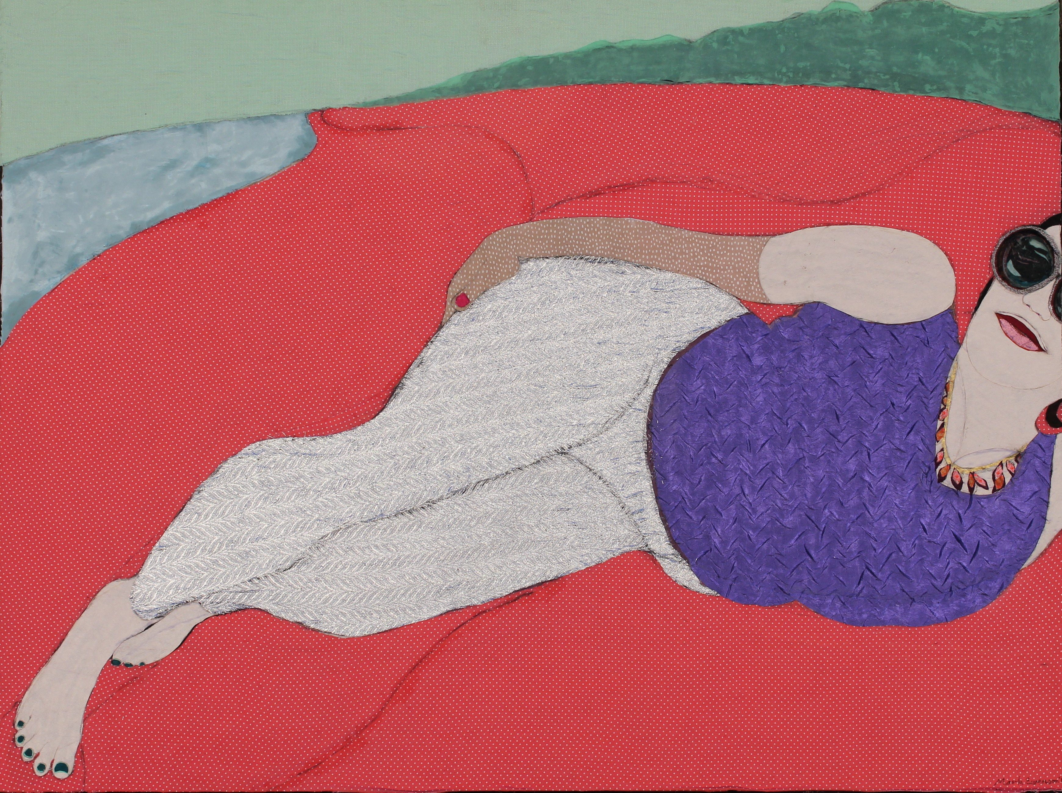 ‘Anita Beach’,layered fabrics,felt pen on board / 2017-18/120×92 cm $2000 BUY NOW ONLINE!…CLICK LINK BELOW ART WORK